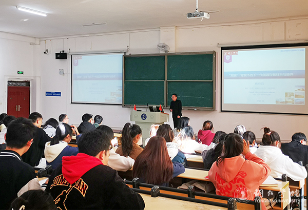 近日,材料与化学工程学院“学术大讲堂”在博思楼开讲。材化学院党委书记唐帮成、副院长冷森林出席启动仪式。该院新能源材料研究方向的杨应昌教授以《“双碳” 背景下的下一代能源存储材料与器件知识》为题作首场讲座。