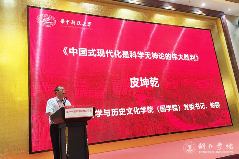 本次论坛设立三个分论坛,与会专家学者专家学者就“马克思主义无神论及其宣传教育”“中华优秀传统文化与无神论”“中华民族现代文明与无神论”“科学文化与无神论”“宗教治理”等重大理论和实践问题进行了深入的探讨。在第一分论坛上,皮坤乾教授作了题为《中国式现代化是马克思主义无神论的伟大胜利》的发言,阐释了中国式现代化作为中国人民在党的坚强领导下历尽千辛万苦、付出巨大代价取得的重大成果,是建立在对“三大规律”深刻认识、准确把握、科学运用之上的高度自觉的现代化,是有先进政党领导、有科学思想指引、有完善制度保障、有系统战略部署、有大国责任担当、有人民团结奋斗的“六有”现代化,使中国取得了举世瞩目的伟大成就,创造了人类文明新形态,为全面建成社会主义现代化强国、实现中华民族伟大复兴、促进人民幸福安康蹚出了一条康庄大道,彰显了中国人民巨大的创造伟力和强烈的历史主动精神,是马克思主义无神论在当代中国的伟大胜利,并必将在深入推进中国式现代化伟大实践中进一步激发人民的创造伟力,彰显马克思主义无神论的彻底性和先进性。