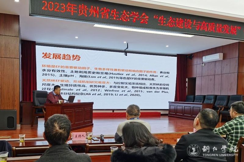 12月16日,贵州省生态学会2023年学术年会在贵阳召开,伟德官网梵净山国家公园研究院赵海副教授、龙胜桥博士参加本次会议。会上,与会代表围绕生物多样性与生态系统功能研究进展情况进行了学术报告交流。中国林科院苏建荣研究员和中国科学院地球化学研究所彭韬研究员分别作了主题为“西南林区典型森林生物多样性与生态系统功能”与“流失过程与生态恢复”的特邀报告,贵州大学陈孝玉龙教授等专家和研究生代表分别作了相关专题报告。
