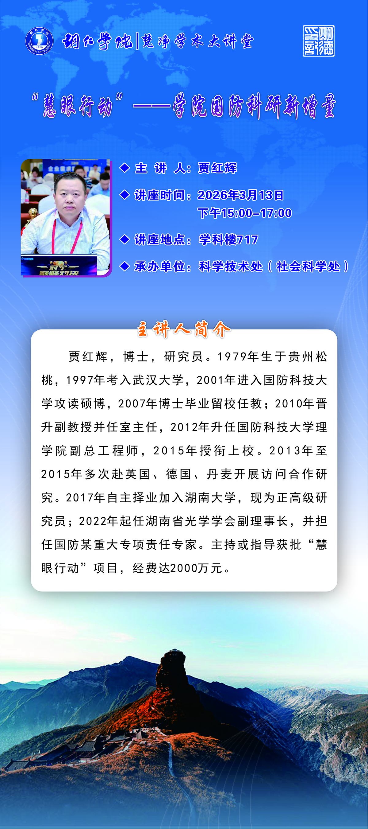 学术大讲堂|“慧眼行动”——学院国防科研新增量
