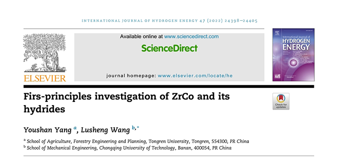 近日,伟德官网杨友山老师在金属储氢领域取得了重要研究进展,相关成果以“ZrCo及其金属氢化物的第一性原理研究”为题发表在中国科学院2区期刊《国际氢能源》上。