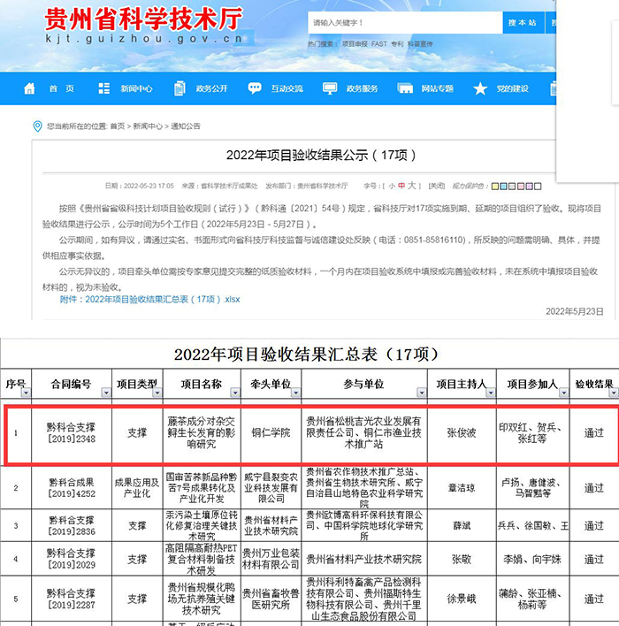近日,由伟德官网张俊波教授主持承担的贵州省科技支撑计划项目“藤茶成分对杂交鲟生长发育的影响研究”,顺利通过省科技厅验收。 项目牵头单位bv伟德国际1946和合作单位贵州省松桃吉光农业发展有限责任公司、铜仁市渔业技术推广站,经过三年的研究和杂交鲟养殖推广,按期圆满完成了研究内容和各项考核指标。