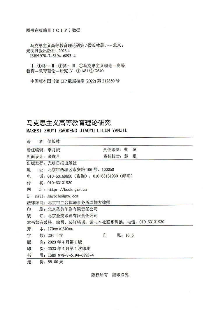 近日,伟德官网二级教授、博士侯长林撰写的《马克思主义高等教育理论研究》一书由光明日报出版社正式出版发行。