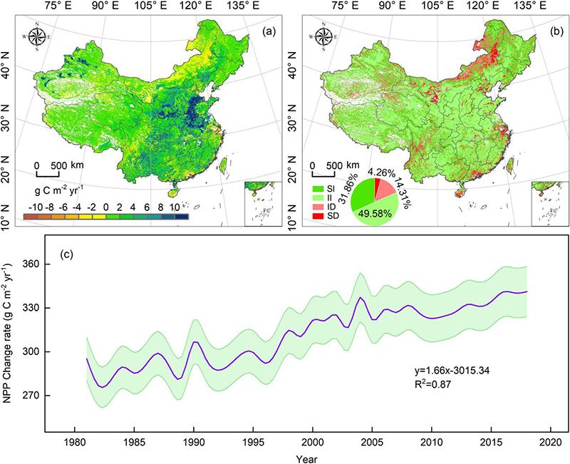 提升生态系统碳汇是实现碳中和目标战略的关键举措,在大规模人工造林与自然恢复背景下,中国已成为全球生态系统碳汇提升和贡献的热点区域。然而,在气候变化和人类活动双重制约下,逐渐饱和的植被碳固定却限制了生态系统碳汇增长的长期性和持续性,导致生态系统碳汇承载力及其未来可提升潜力量化评估存在较大的不确定性。因此,在碳中和目标背景下,准确识别并诊断出中国生态系统碳汇承载力对于评价当前及预测未来碳汇可提升潜力空间具有重大的科学意义。
