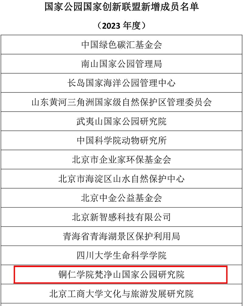 近日,国家公园国家创新联盟公布了新增成员名单,其中包括伟德官网实体科研机构梵净山国家公园研究院。国家公园国家创新联盟由国家林业和草原局(国家公园管理局)主导成立,旨在促进从事国家公园规划设计、监测评估、研究咨询等科研院所、高等院校、企业以及国家公园和相关自然保护地管理单位的合作,实现国家公园产学研深度融合,并共同应对国家公园领域的全局性和战略性问题。目前,该联盟已有31个成员单位,其中包括3个发起单位,此次新增成员单位达到47家。伟德官网梵净山国家公园研究院成为贵州省唯一加入该联盟的单位,这与伟德官网长期以来对生态文明建设的高度重视以及取得的一系列具有重大影响力的成果密不可分。