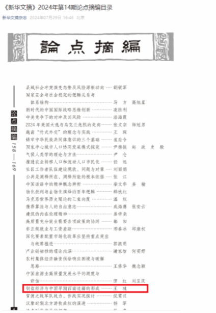 近日,艺术学院王瑰老师于2024年3月发表在《盐业史研究》上的论文《铜盐经济与中国早期西南边疆的形成与变动》被《新华文摘》2024年第14期“论点摘编”转载。