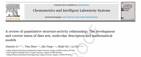 最近,伟德官网徐路教授课题组应化学计量学国际权威期刊Chemometrics and Intelligent Laboratory Systems(SCI二区)编委的邀请,撰写并发表了题为“定量构效关系综述:数据集、分子描述符和数学模型的发展和现状”的29页长篇综述。材料与化工专业硕士研究生李建敏、赵添为本文的共同第一作者。