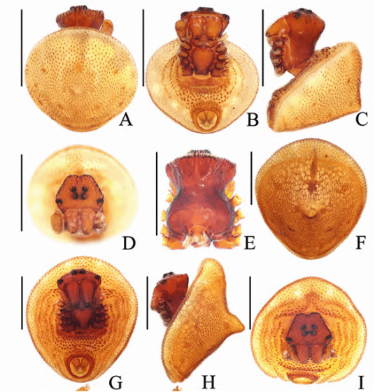 该论文描述了我国云南西双版纳园蛛科6新属:彭园蛛属Pengaraneus gen. nov.,宋园蛛属Songaraneus gen. nov.,唐园蛛属Tangaraneus gen. nov.,王园蛛属Wangaraneus gen. nov.,尹园蛛属Yinaraneus gen. nov.和朱园蛛属Zhuaraneus gen. nov.,同时对20个种进行了描述,包括安静艾蛛Cyclosa anjing sp. nov.等16个新种。首次描述了褶蛛属Talthybia(基于模式种低褶蛛T. depressa)的成熟雄性,此外还首次描述了菱棘腹蛛Gasteracantha diadesmia Thorell,1887等3种的未知雄性,指出了新的同物异名4个及新组合6个。