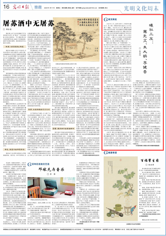 1月17日,《光明日报》刊发伟德官网孙向阳教授撰写的文章《曦社三友:蹇先艾、朱大枏、李健吾》。该文系作者承担的贵州省哲学社会科学规划课题一般课题“蹇先艾年谱整理与研究”(21GZYB31)阶段性成果。