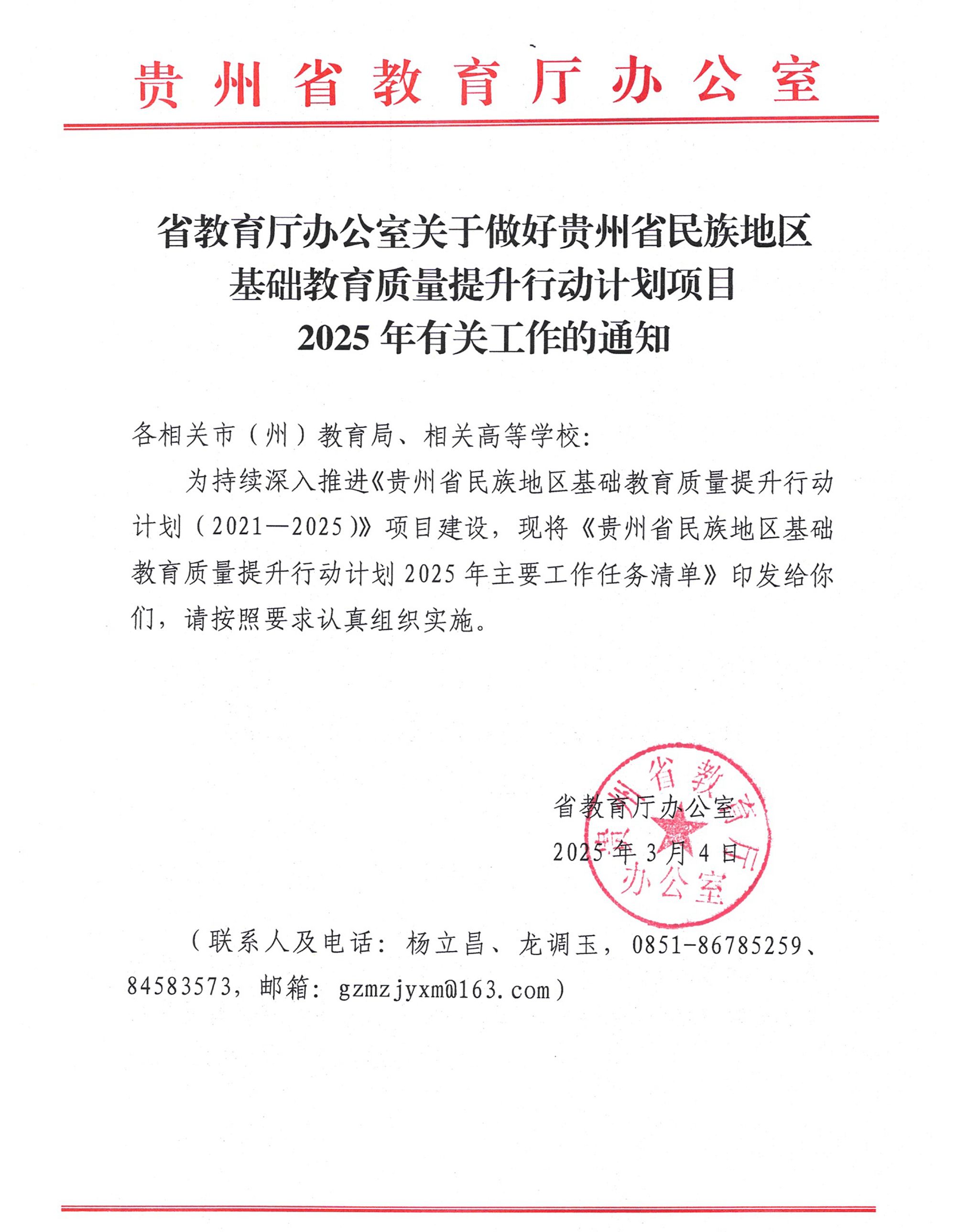 近日,《省教育厅办公室关于做好贵州省民族地区基础教育质量提升行动计划项目2025年有关工作的通知》正式印发,其中采纳并推广了伟德官网在贵州省民族地区基础教育质量提升计划项目中探索出的创新型项目推动模式,这一模式为贵州省其他高校在推动民族地区基础教育质量提升项目落实提供了宝贵经验。