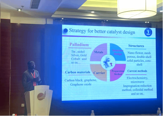 Amir Mahmoud Makin Adam博士在“新型电催化材料与表征”分会场以“Electrocatalysis in Energy Conversion: Bridging Research and Practical Applications”为题作了主旨报告,系统阐述了电催化材料设计的最新进展,探讨了如何通过优化催化剂结构提升能源转化效率,并分享了团队在低成本、高效能电催化体系构建中的创新实践。研究生孙睿在“先进储能材料与技术”分会场以“碱性锌锰液流电池电解液添加剂的开发与应用”为题汇报了在锌锰液流电池领域的最新突破,其通过引入环境友好型电解液添加剂,成功提升了电池的循环稳定性和能量密度,为解决水系电池寿命短、效率低等瓶颈问题提供了新思路。研究生苏安康在“电催化与燃料电池”分会场中以“碱性铝空气电池氧还原催化剂及电解液的优化”为题作了报告,详细介绍了通过催化剂活性位点调控和电解液组分优化来提升铝空气电池综合性能的研究思路,其提出的“双功能界面工程”策略为铝空气电池的商业化应用提供了理论支撑。