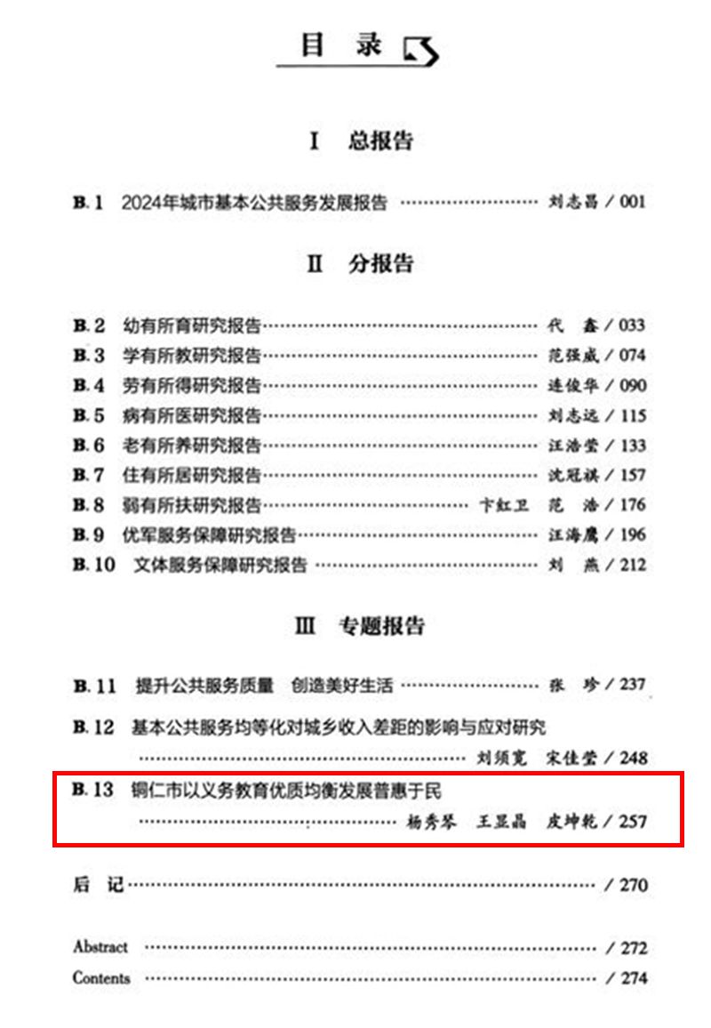 这一研究成果,借助于公共服务蓝皮书的高端展示平台,进一步扩大了铜仁市义务教育优质均衡发展的影响力。