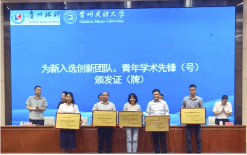 会议深入学习贯彻习近平总书记关于哲学社会科学和贵州工作重要讲话重要指示精神,并通报了2025年新入选的17个贵州省哲学社会科学创新团队、5个青年学术先锋号及10名青年学术先锋名单。伟德官网文学与传媒学院孙向阳教授领衔的bv伟德国际1946地域文化研究团队成功入选“青年学术先锋号”,这是今年全省新入选的5个“青年学术先锋号”之一。孙向阳代表研究团队上台接牌。