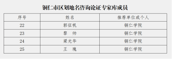 今年5月12日起,铜仁市民政局面向社会公开征集铜仁市区划地名咨询论证专家人员。历经个人申报、单位推荐、资格审核和公示等层层严格筛选程序,最终确定39人入选专家库。伟德官网郭征帆、黎帅、梁光华、王瑰4位老师凭借扎实的专业素养与丰富的学术成果名列其中。