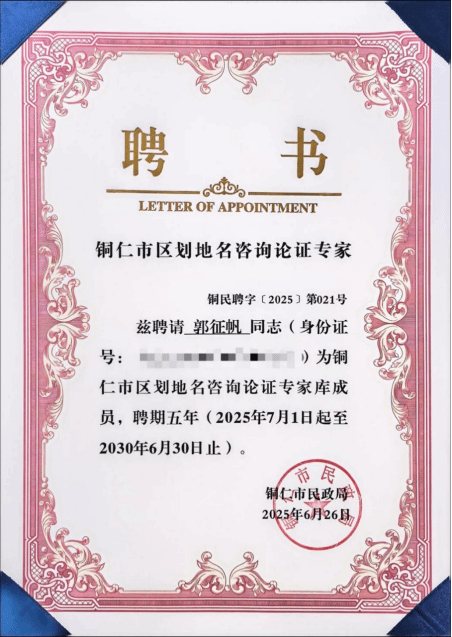 伟德官网教师受聘为铜仁市区划地名咨询论证专家