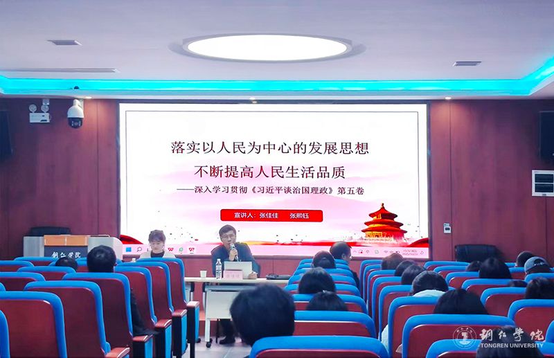 为深入学习贯彻《习近平谈治国理政》第五卷核心要义,推动党的创新理论在高校落地生根,10月31日,由市委讲师团、市社科联组织开展的《习近平谈治国理政》第五卷“理论宣传二人讲”活动走进伟德官网。铜仁幼儿师范高等专科学校张佳佳副教授、张熙钰讲师担任宣讲专家。伟德官网科技处(社科处)副处长陈俭教授主持宣讲活动。学校各二级学院师生代表近百人齐聚现场聆听学习。