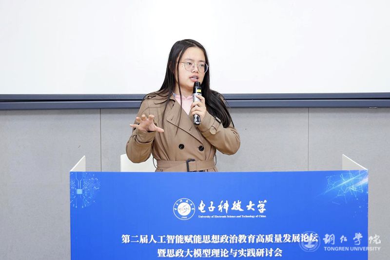 此次研讨会共设有“人工智能赋能思想政治教育研究”“人工智能赋能思政课教学创新研究”“人工智能赋能思政教育风险治理研究”“人工智能与思政教育融合发展研究”四个分论坛。梁成艾教授在分论坛一就人工智能如何赋能思想政治教育发展同与会专家学者们进行了深入的意见交流。研究生江思梦在分论坛四围绕“DeepSeek之于职业院校思想政治教育的价值、风险与应对”这一题目,从内容三维、价值“三促”、风险“三忧”、路径“三抓”这一“3333”的结构展开精彩论述,赢得了与会专家学者的热烈掌声。