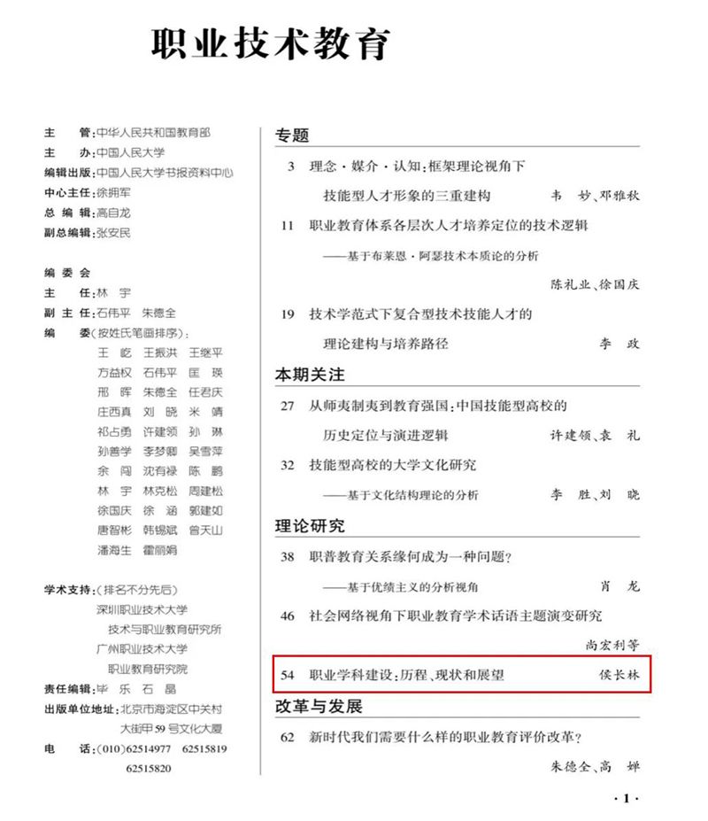 近日,伟德官网侯长林教授撰写的论文《职业学科建设:历程、现状和展望》被中国人民大学复印资料《职业技术教育》2026年第2期全文转载。该论文原发表于《贵州师范大学学报(社会科学版)》2025年第4期,系国家社科基金项目“职业学科基本理论及其体系构建研究”(BJA220245)的阶段性成果。