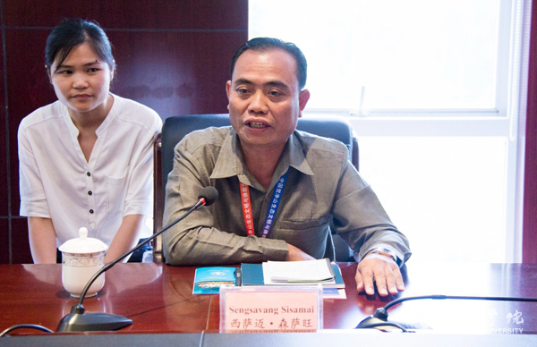 老挝建国阵线宗教事务司副司长西萨迈·森萨旺讲话