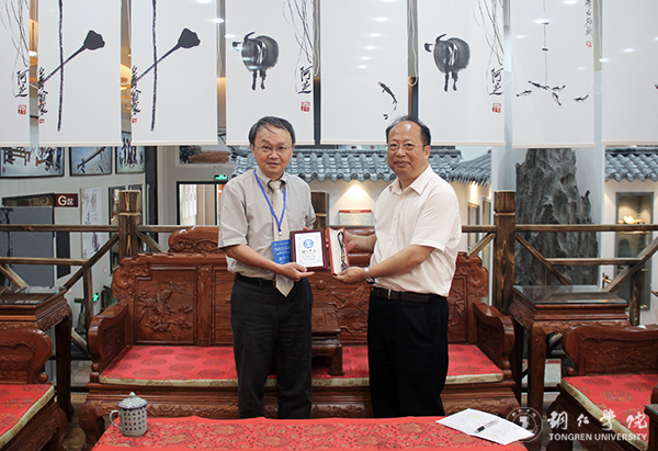 伟德官网校长侯长林教授与台湾通识教育学会理事长庄荣辉教授交流并赠送纪念品