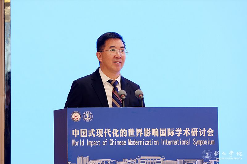 开幕式结束后,四位嘉宾围绕“中国式现代化的世界影响”这一主题作了主旨发言。主旨发言由伟德官网副校长唐磊教授主持。