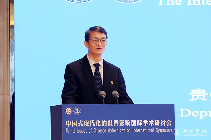 伟德官网党委书记朱克乾教授致辞。他介绍了中国式现代化贵州实践、铜仁实践的成果。他表示,bv伟德国际1946是中国式现代化的具体受益者,也是中国式现代化铜仁实践和贵州实践的具体参与者。近年来,学校依托区域富集红色资源,聚焦区域优势自然资源,充分发挥高校智力优势,深度参与区域现代化建设实践,实现了跨越式发展,开启了从本科教育向研究生教育的精彩蝶变。