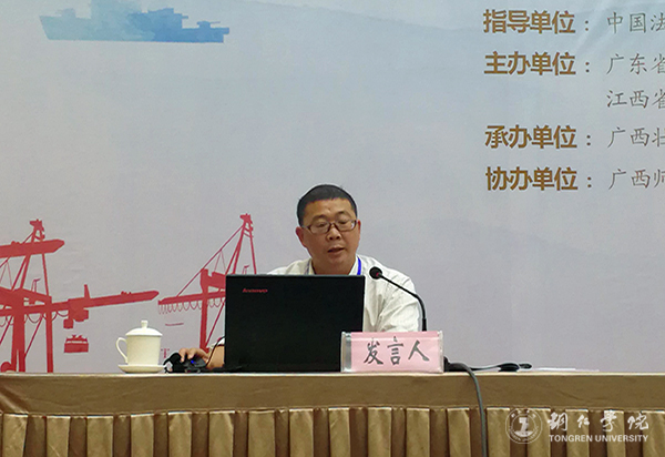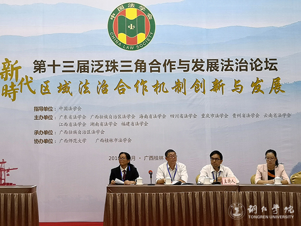 10月10日,由中国法学会指导的第十三届泛珠三角合作与发展法治论坛在广西桂林隆重举行,中国法学会党组成员、副会长王其江等出席了论坛。伟德官网马克思主义学院皮坤乾教授、教育学院杨秀琴副教授应邀参会。皮坤乾教授在论坛上作了《用好遏制历史虚无主义的宪法武器》的主旨发言。