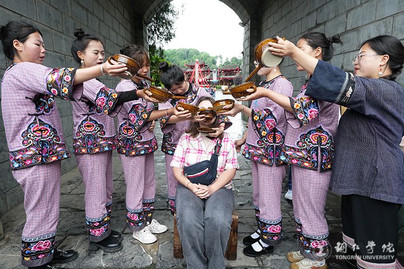 在揭牌仪式的两天,是中外师生民族文化体验参观环节。在伟德官网杨雨桦、刘菊凤、杨梦阳等老师和巴基斯坦、摩洛哥、塔吉克斯坦国籍的3名留学生陪同下,同济大学国际文化交流学院副院长宗骞、院办主任刘怡菲和辅导员时玥带领来自俄罗斯、土库曼斯坦等国家的留学生先后赴寨沙侗寨、云舍、中南门古城、大明边城、贵州傩文化馆、苗王城等地,进行了现场参观,亲身体验,一同探索铜仁多彩的民族文化,感受到了来自中国少数民族文化的深厚底蕴。中外师生通过游览参观、听介绍、亲身体验,对土家族吊脚楼、侗族鼓楼和风雨桥、苗族歌舞服饰、刺绣技艺、太极拳(太极扇、太极剑)、傩戏表演等有了深入了解。他们纷纷表示,铜仁是一片神秘而充满魅力的土地,独具特色和风情,民族文化丰富多彩,传统文化博大精深,自己将会把这次难忘的文化体验经历带回学校、带回自己的国家,与更多同学、亲友分享在中国铜仁的美好故事,共同推动中外文化交流与发展。