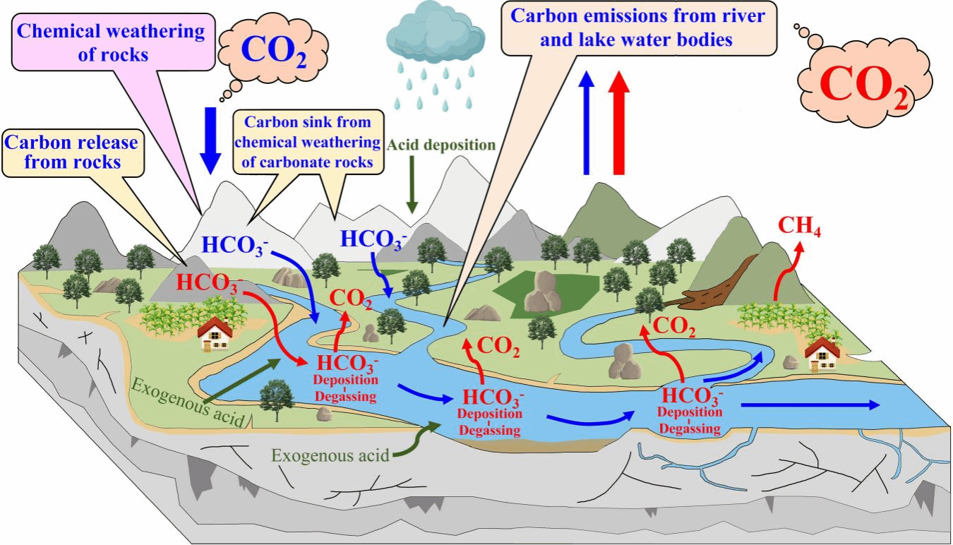 图2 岩溶生态系统河湖碳脱气效应