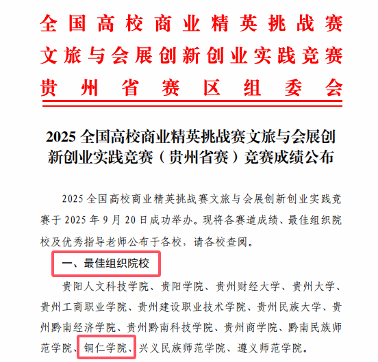 2025年920日,全国高校商业精英挑战赛文旅会展创新创业实践(贵州省赛)线下赛在贵阳市贵州商学院成功举办本次竞赛由省教育厅、省商务厅和省文化和旅游厅联袂指导,贵州省会展行业协会主办,贵州商学院承办,成功打造出了一场高水平的创新竞技赛。
