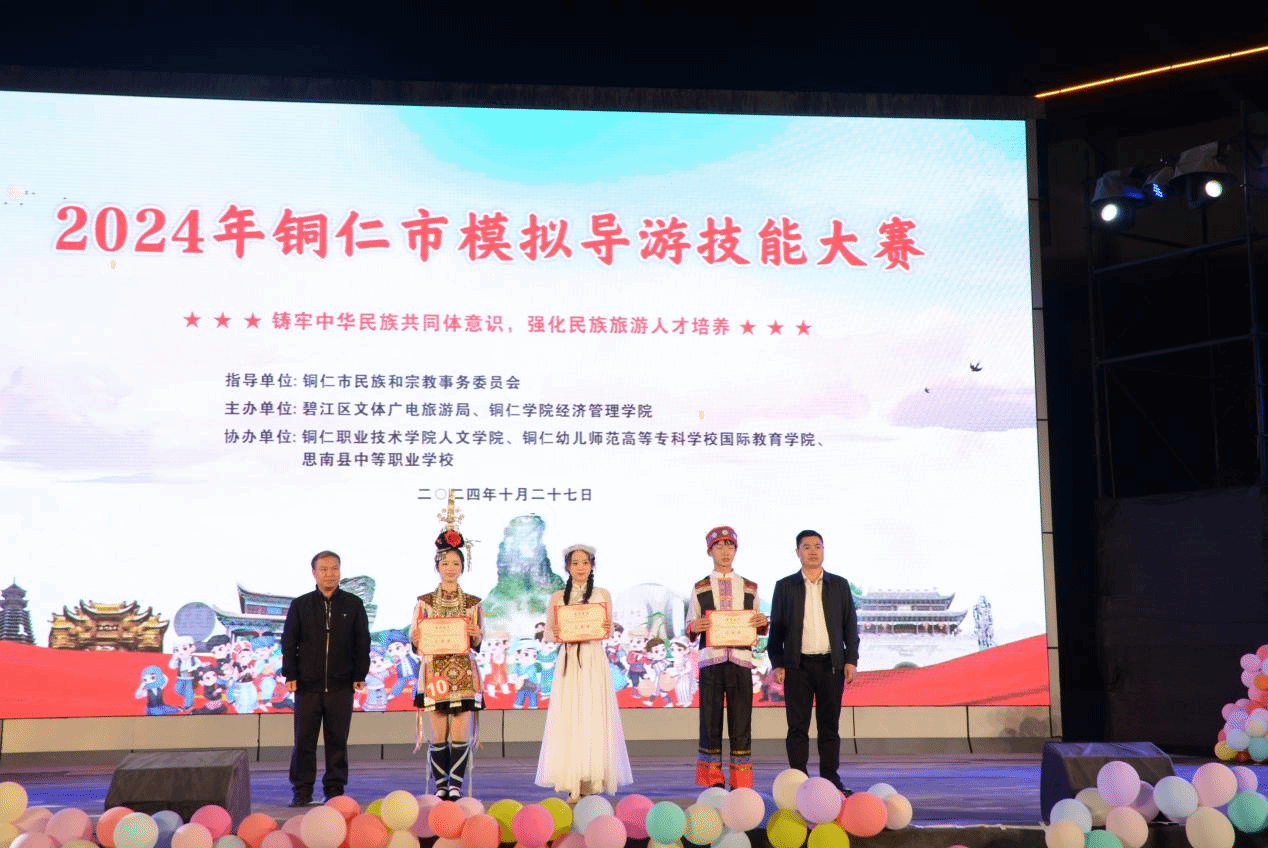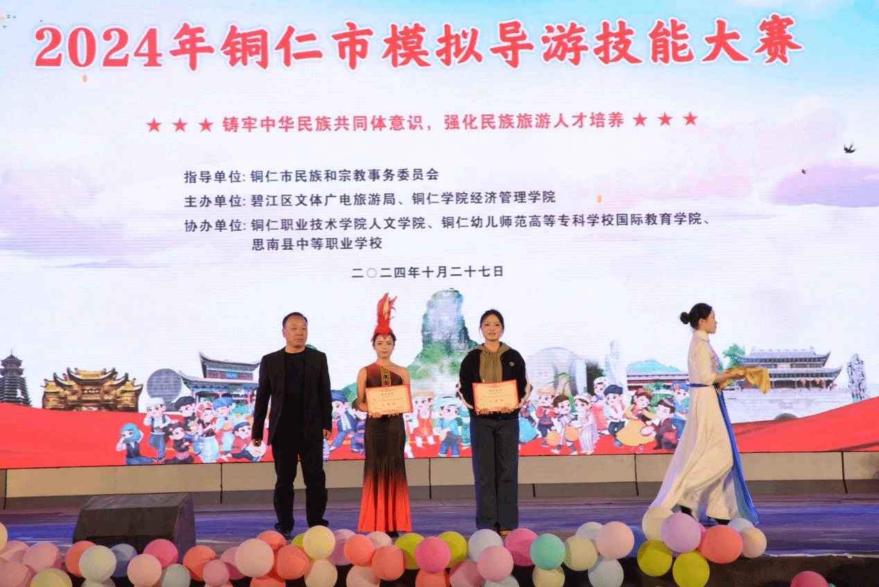 10月27日晚,2024铜仁市模拟导游技能大赛在中南门古城团结广场举行。本次比赛由铜仁市民族和宗教事务委员会指导,碧江区文体广电旅游局、bv伟德国际1946经济管理学院主办,铜仁职业技术学院、铜仁幼儿师范高等专科学校、思南县中等职业学校协办。bv伟德国际1946副校长杨建、bv伟德国际1946经济管理学院党委书记徐仕强,bv伟德国际1946教务处副处长马俊锋、铜仁市民族和宗教事务委员会副主任杨婵娟、铜仁市碧江区文体广电旅游局副局长向忠权等人出席了本次大赛。
