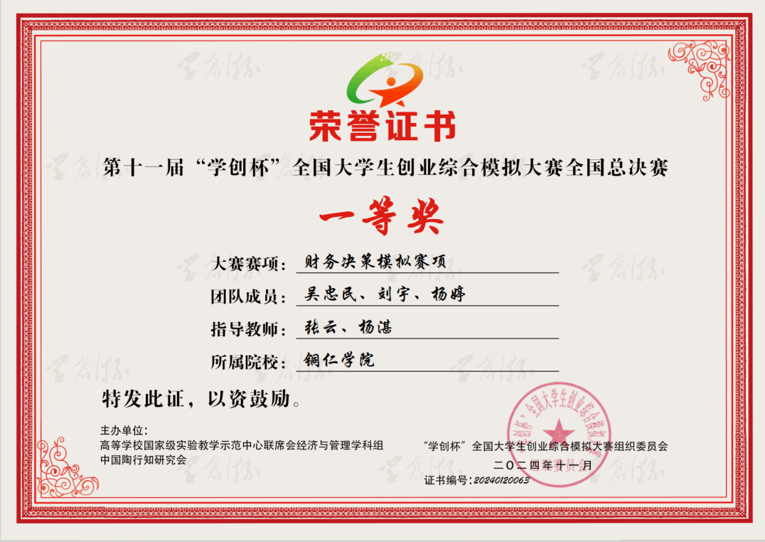 9月22日,第十一届“学创杯”全国大学生创业综合模拟大赛贵州省选拔赛举行,比赛分为创业综合模拟赛项、数字营销模拟赛项、财务决策模拟赛项三个赛项。比赛需在规定时间内,完成四轮虚拟季度的经营决策来自全省30所高效148组本科参赛队伍、47组高职队伍同台竞技。由伟德官网经济管理学院吴忠民、刘宇、杨婷组建的洞察财迹队(指导老师张云、杨湛)参加了本次财务决策赛道选拔赛,并以该赛道全省第一名的优异成绩获得全国半决赛两个参赛资格之一。