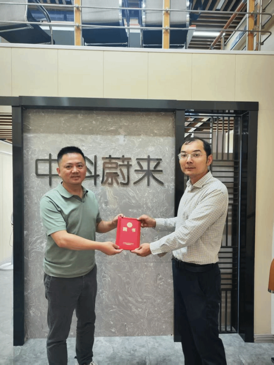 此次签约仪式上,还为汤炀,吴圣达两位数字经济领域专家颁发了聘任证书,也是中科蔚来公司为我院人才培养提供行业导师资源。