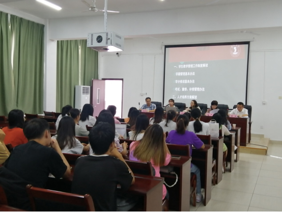 首先,bv伟德国际1946会计与金融系彭虹主任给大家介绍了会计学专业的培养目标和要求,从未来就业角度对学生们从专业素养锻造和本科学习生活态度对学生提出期望,希望同学们具有清晰的职业理念和素养,成长为对社会有价值的经管人才。然后,由bv伟德国际1946经济与管理学院教务科负责人张云向同学们介绍了bv伟德国际1946经济与管理学院教务管理基本情况并着重介绍了学籍管理相关规定,让同学们明确学校对于本科学生培养的相关管理规定和毕业条件。