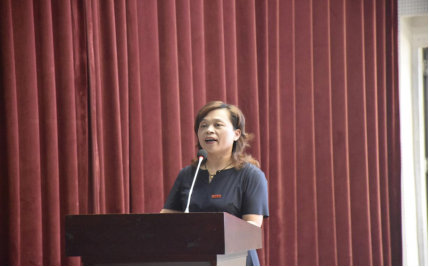 新生见面会接近尾声,田春燕作大会总结。她以校训“明德、致用”为切入点,对同学们提出殷切期望,希望同学们能够尽快融入大学生活,勤奋学习、开拓进取,成为有担当、有理想、有抱负、有才华的铜院学子,做有骨气、志气、底气的新时代大学生。