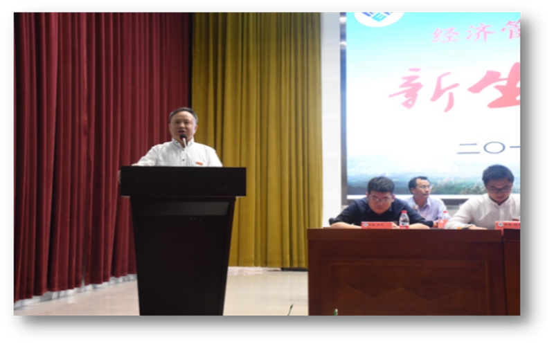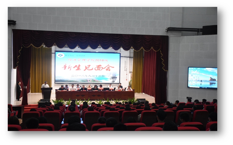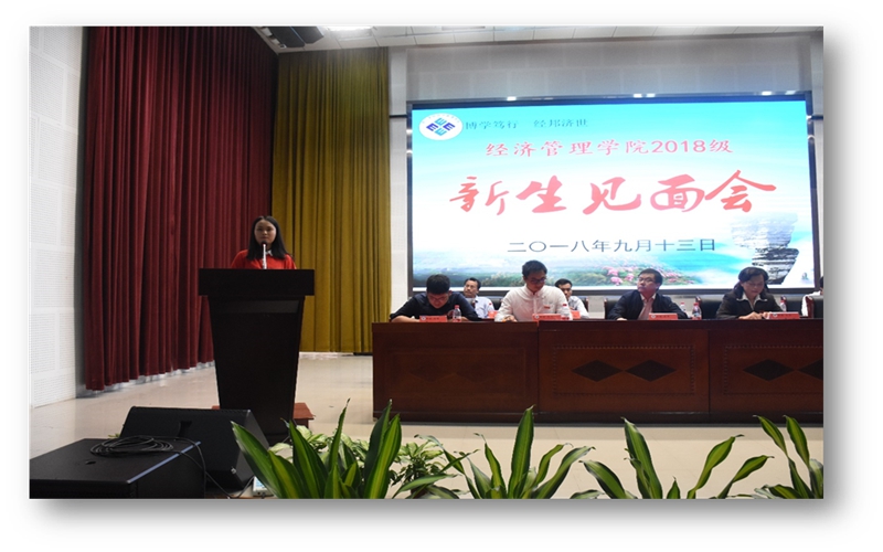 为了加进2018级新生与老师的交流与沟通,为了增加老师对同学们的了解,同时也为了让新生对本专业以及今后的大学生活有初步的认识。9月13日早上,经济管理学院2018级新生见面会在人文生态馆举行。出席本次见面会的有经济管理学院副院长周贤贵、经济管理学院党委副书记田春燕等8位学院领导。各专业辅导员代表以及2018级的全体新生参加了本次大会。