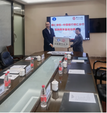最后,徐永东一行来到中国银行铜仁分行,杨笛副行长、窦伟书记、谢金秋经理、张蔷支行行长一行人参与了座谈会。会上,杨笛副行长就中国银行与学院的合作关系及发展前景进行了介绍,徐永东对于实践基地的意义以及未来合作愿景做了介绍。双方还就如何应对市场需求调整人才培养计划、学生就业去向等问题展开了深入交流。最后,徐永东代表学院与杨笛副行长签署了合作协议并授予了牌匾。