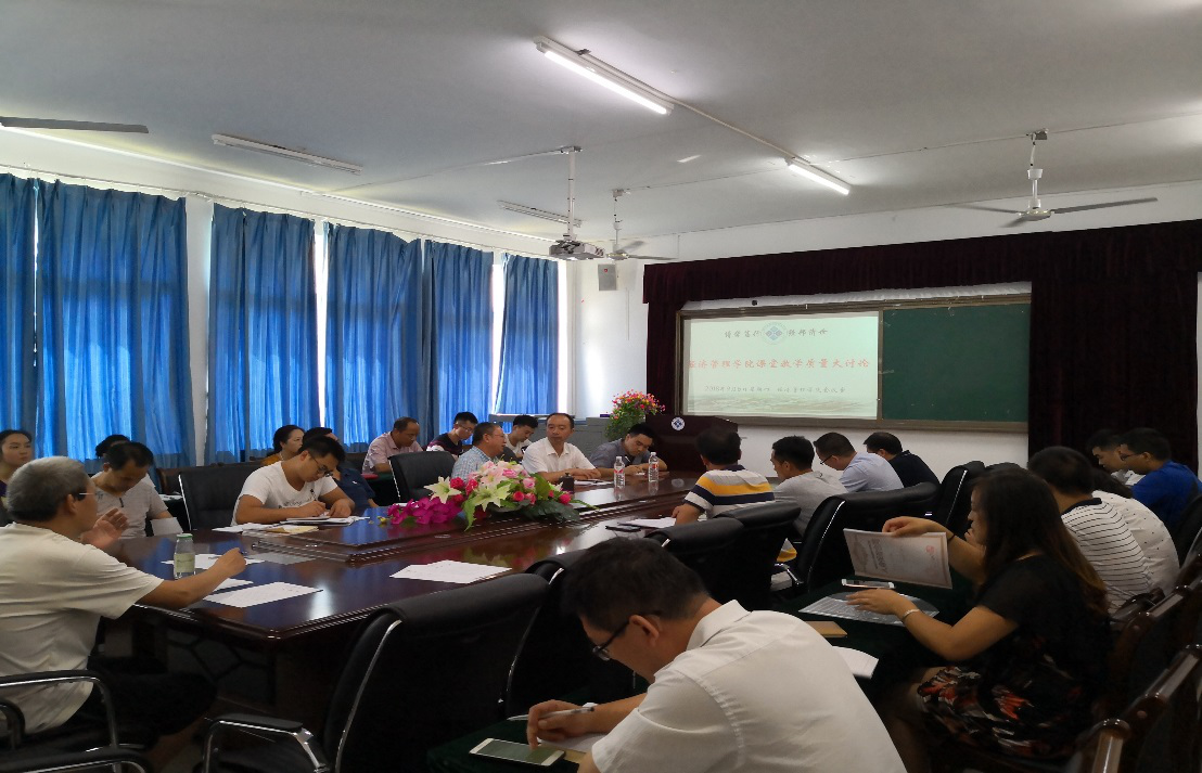 为响应教育部在成都召开的“新时代全国高等学校本科教育工作会议”会议精神,响应学校要求学习《关于狠抓新时代全国高等学校本科教育工作会议精神落实的通知》文件的主要精神。2018年9月6日,我院在教务处的指导下召开了课堂教学质量大讨论会议。