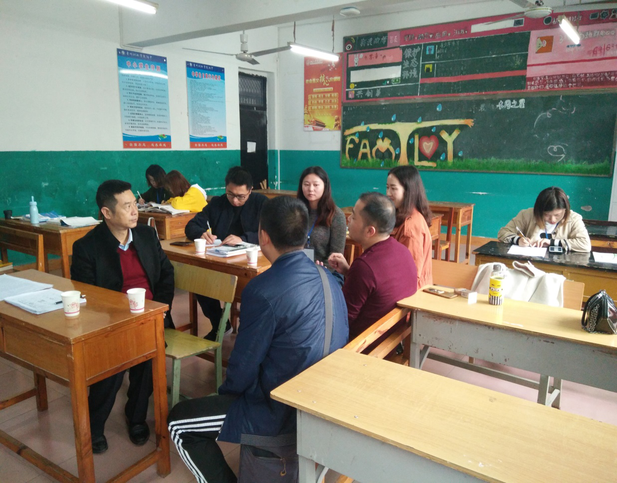 邬小学书记与杨周系主任在教室与教学的学生交流