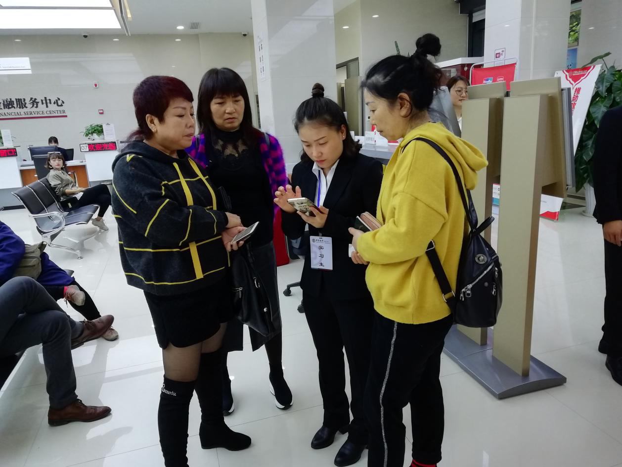实习生在大厅中帮客户解决业务问题