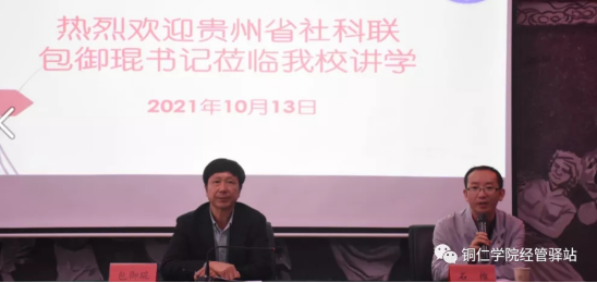 党的十九届五中全会提出:优先发展农业农村,全面推进乡村振兴。为让同学们深刻理解此精神,10月13日,贵州省社会学科界联合会第五届委员会书记包御琨书记应邀来到经济管理学院,于明理楼B202教室作了以“优先发展农业农村,全面推进乡村振兴”为主题的学术讲座。伟德官网副校长石维、我院副院长徐仕强出席此次讲座,谭志勇、赵海、耿敬杰等老师和各专业部分同学参加此次讲座。