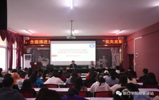 讲座开始,包御琨书记用自己的经历告诉同学们幸福的本身与环境无关,幸福是由自己创造而来;其次,他从农村产业绿色发展的演变与内涵、优势、瓶颈、对策与建议四个方面展开讲解,他指出,农村产业绿色的发展优势是指生态、产品、市场、产业四个方面的优势,并向同学们介绍了贵州产业优势中具有代表性的十二个重点绿色产业;最后,对于农业产业链的短板问题,他提出了六个“一”的解决方法,即一乡一批人才、一村一个产业、一组一个党支部、一寨一个文化院、一户一个小庭院、一人一颗感恩心。讲座接近尾声,我院副院长徐仕强代表全体师生对包御琨书记此次讲座讲解表示感谢,并鼓励同学们在日后从事相关的乡村振兴事业时要密切联系人民群众,弘扬苦干、实干的奋斗精神,学习新观点、新思路、新方法。