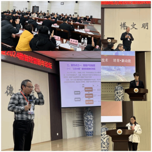 2024数智经管新年论坛主要围绕学科研究、专业建设、产教融合与课程建设等话题开展交流研讨,厦门大学唐礼智、咸阳师范学院姚波、新道科技股份有限公司陕西省区副总经理王欣和北京理工大学出版社高教分社副社长王小莉分别作了题为《数智时代下地方高校在数字经济研究中的作为》《地方高校经管类教师专业能力提升路径探索与实践》《产教融合 协同育人 助力数智经管专业高质量发展》《高校经管类数字教材建设探索与规划教材储备建设》的主题报告。
