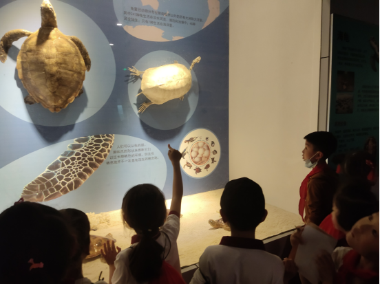 上午9点,大学生们迎着朝阳,意气风发带领小学生队伍来到万山九丰农业博览园,分别参观了智能观光大棚、昆虫科普馆、海洋科普馆。志愿者们结合各个场馆的知识内容和特点为小学生们讲解科学知识:围绕“智能观光大棚”展开讲解,告诉小朋友们,现今大家能够吃到丰富的有机蔬果得益于中国共产党的正确领导和人民群众的艰苦奋斗和勤劳智慧,吃上安全新鲜蔬菜并鼓励小朋友们在今后要好好学习,让自己掌握丰富知识,将来为国家的发展做贡献;随后以昆虫馆里的昆虫名称特性等开展知识竞答游戏,并用蚂蚁、蜜蜂等昆虫教导小朋友们学习勤劳、团结的精神;最后通过开展讲红色故事和趣味性活动,让小朋友们把自己当天所学所闻所感讲解出来,培养了小朋友们领悟能力、表达能力,同时也提高了自己的人文情怀。