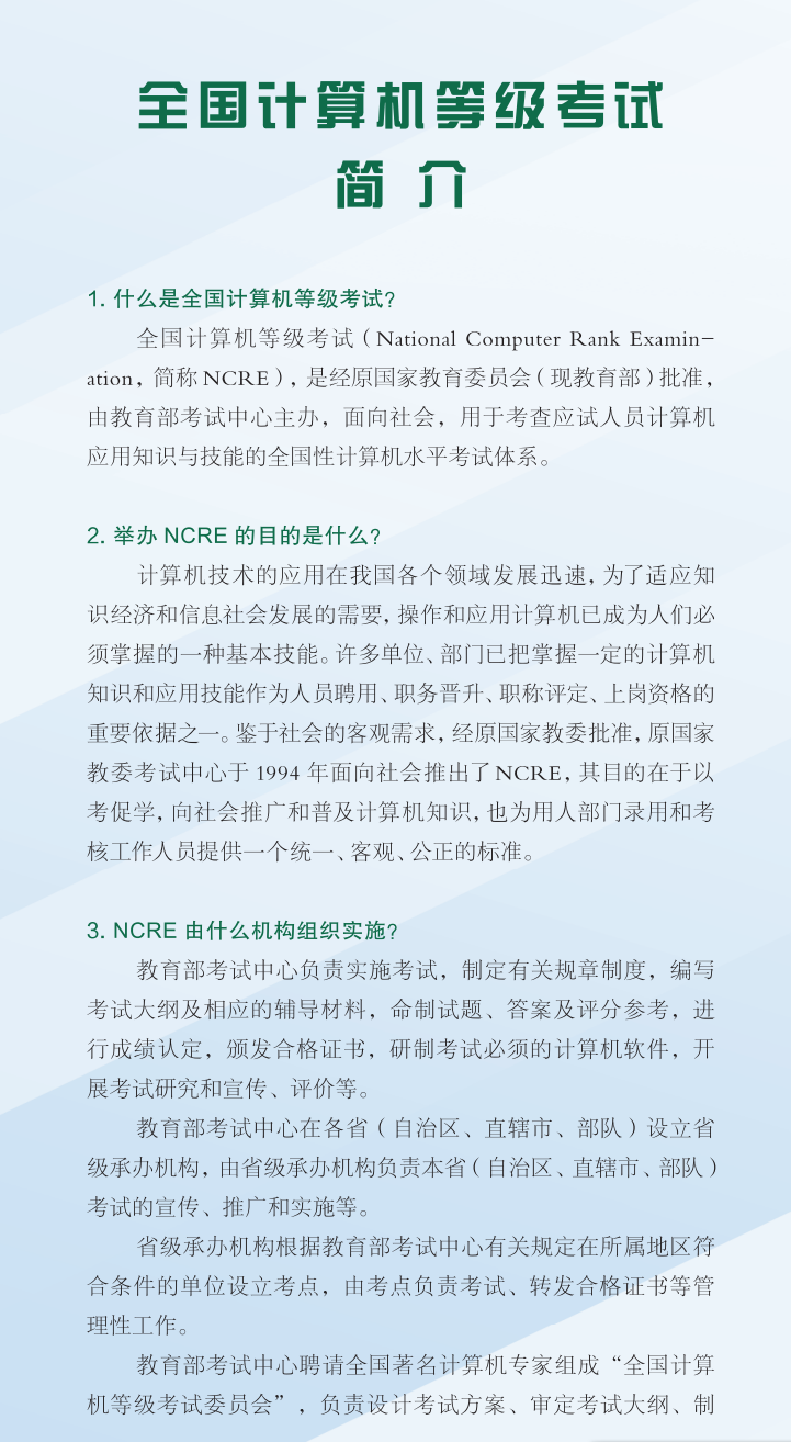 【考试管理】全国计算机等级考试简介