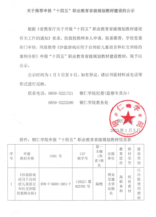 【教材建设】关于推荐申报“十四五”职业教育省级规划教材建设的公示