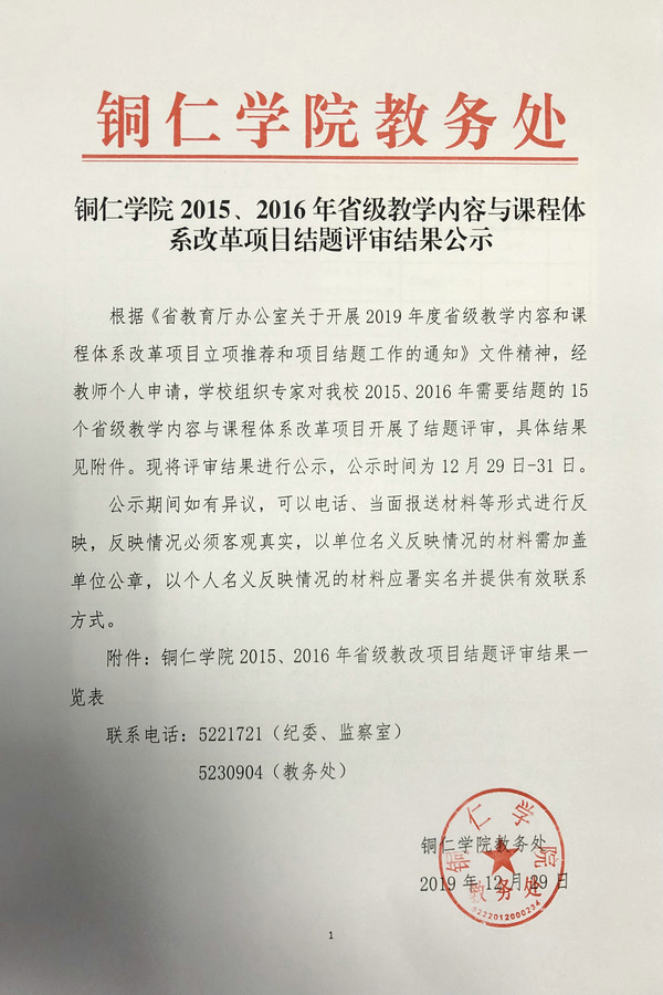 【教学项目】bv伟德国际19462019年贵州省教学内容与课程体系改革项目推荐立项公示