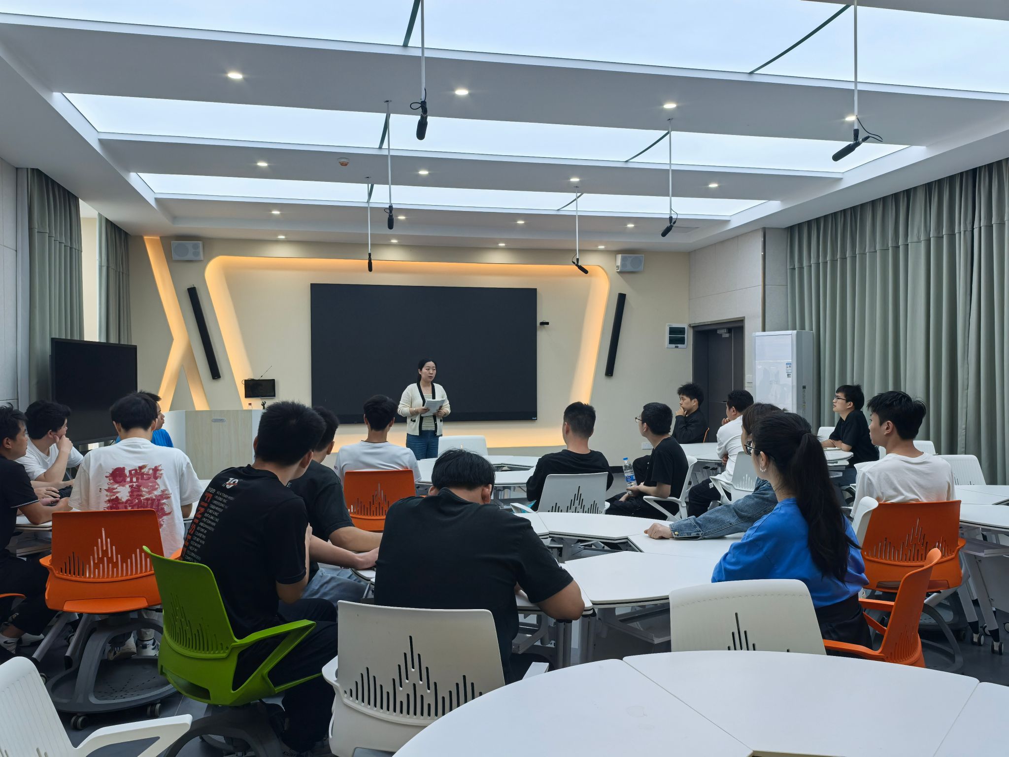 本次讲座紧扣“教学口语规范”主线,内容覆盖发音矫正(平翘舌、前后鼻音辨正)、教学情境用语(课堂指令、师生互动语言设计)、方言干扰突破(如本地特色语音、词汇纠偏)等实用模块。主讲教师结合自身教学经验与国家普通话水平测试标准,通过“理论讲解+案例示范+现场纠音”的互动模式,带领学生逐字逐句打磨发音细节,针对“n/l不分”“儿化音掌握不牢”等常见问题提供个性化指导。