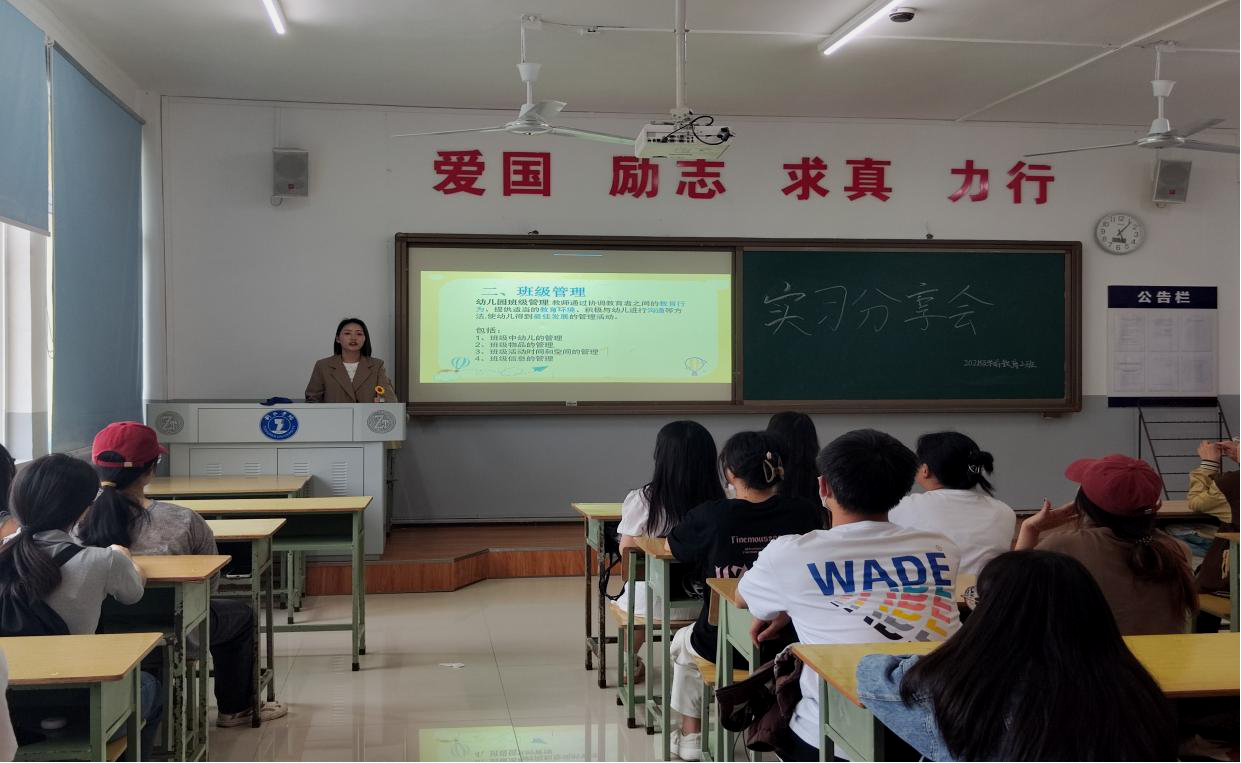 教育实习是教师专业化发展的重要环节,为全面总结实习生学习与管理工作,近期,学前教育专业召开了2022年实习总结交流暨2023年实习工作部署会议。此活动由两部分组成,第一部分主要是2022年实习工作总结和2023年实习工作部署会,第二部分是优秀实习生进班经验交流。