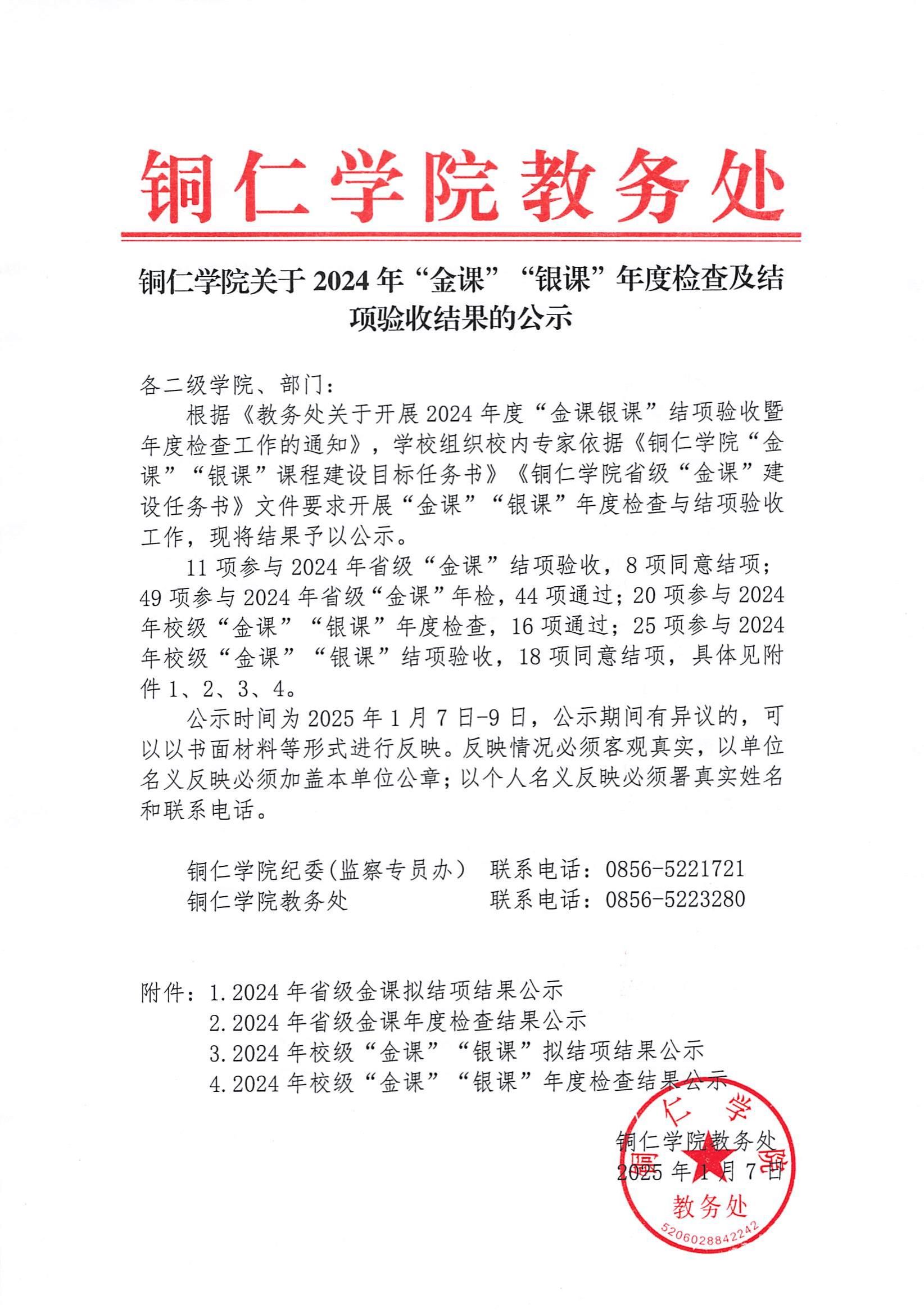bv伟德国际1946关于2024年“金课”“银课”年度检查及结项验收结果的公示